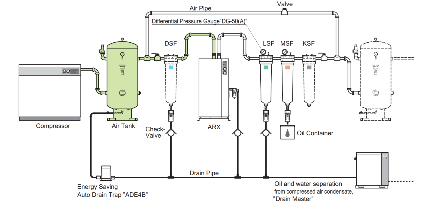 Vị trí các lọc trên đường ống phụ thuộc chủng loại cũng như tùy khuyến cáo của các hãng. Lọc nước đặt trước máy sấy khí, các lọc khác thông thường sẽ đặt sau máy sấy khí