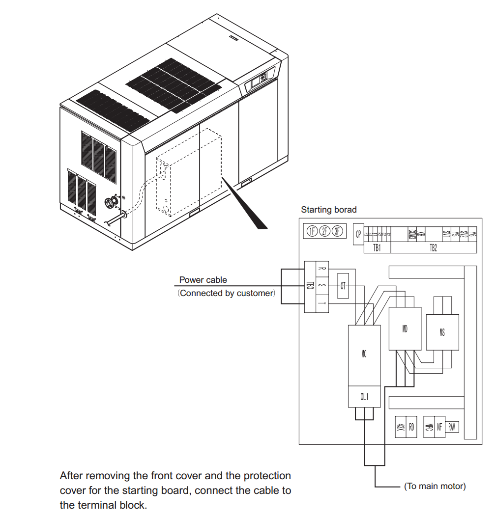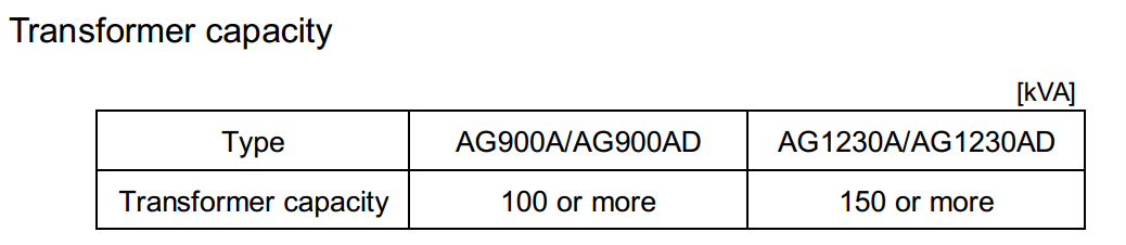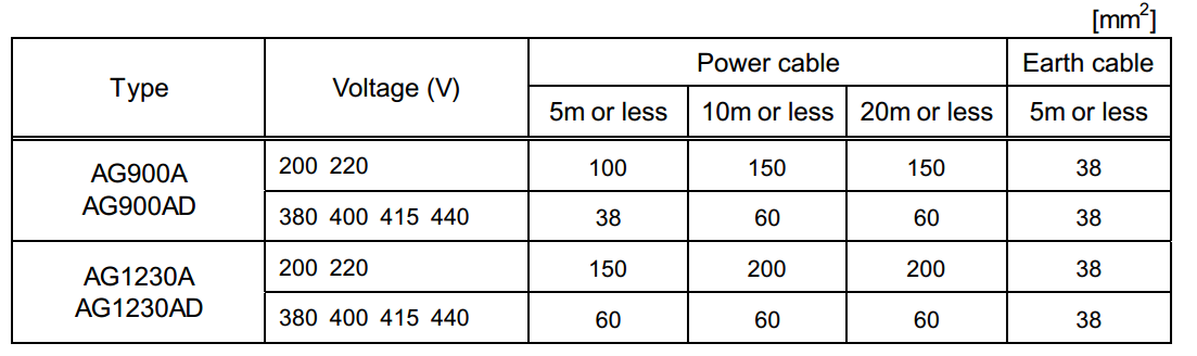- Cáp điện cần lựa chọn phù hợp công suất máy và khoảng cách từ máy đến tủ điện. Việc lựa chọn theo khuyến cáo của nhà sản xuất